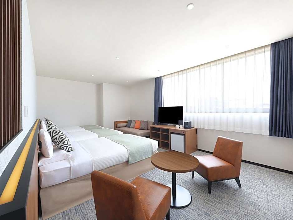 The quadruple room features air conditioning, tatami, as well as a private bathroom boasting a bath and a shower. The quadruple room provides a safe deposit box, an electric kettle, pajamas, heating, as well as a flat-screen TV. The unit has 2 beds and 2 futons.